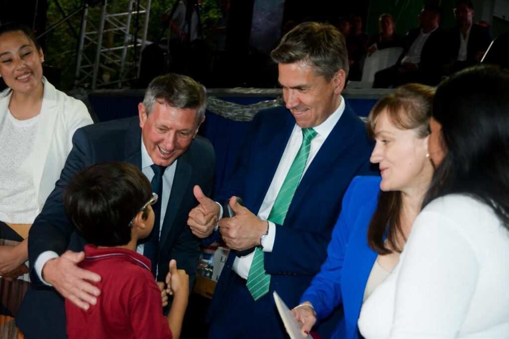 El gobernador anunció también nuevas obras para la región, entre ellas el inicio de la pavimentación de la Ruta 6, y reafirmó su compromiso de seguir impulsando educación, salud, producción y seguridad en todo el territorio.
