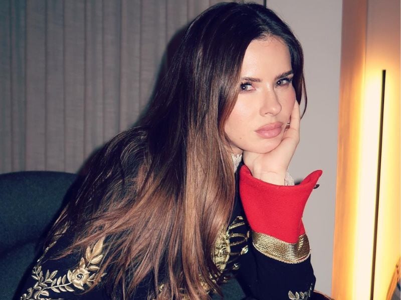 Todo comenzó con un posteo en su cuenta de Instagram, donde la actriz compartió una serie de fotos con un llamativo outfit. Sentada sobre un sillón, posó con una chaqueta negra estilo militar tipo húsar, con bordados dorados y mangas rojas, combinada con una falda blanca de encaje romántico y botas bucaneras de charol negro, altas y de taco fino.
