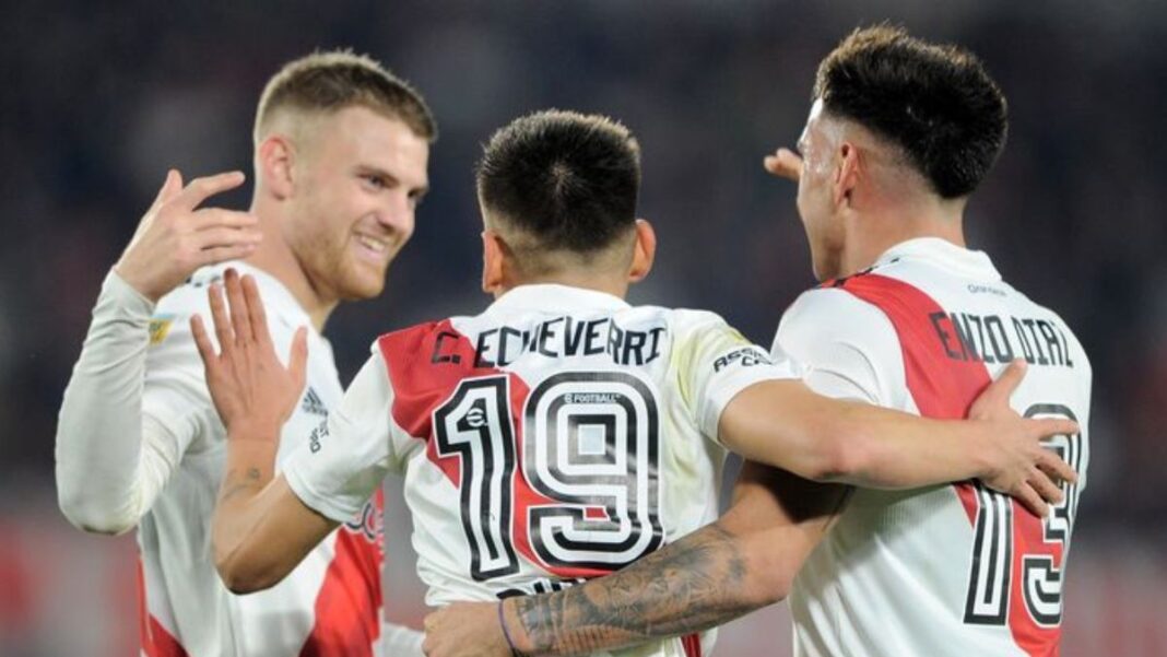 Echeverri irrumpió como una de las grandes promesas de River, club donde se formó y del que partió con grandes expectativas. Durante su pasó por el «Millonario», disputó 48 partidos oficiales, anotó cuatro goles y contribuyó con varias asistencias, además de formar parte de los planteles que lograron la Liga Profesional, el Trofeo de Campeones y la Supercopa Argentina en 2023.